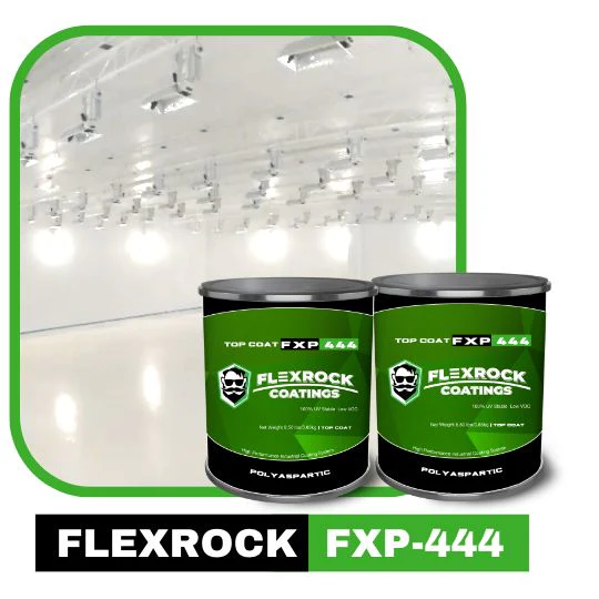 FlexRock FX-444 is a two component high solids polyaspartic clear topcoat with excellent chemical resistance, UV stability, abrasion resistance and hardness. This material is intended to be used as a high gloss topcoat over paint chips, decorative broadcasts or colored quartz broadcasts to provide an infinite array of color schemes or patterns. Pigment can also be mixed in with topcoat before application.