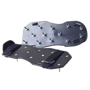 Durable black polypropylene shoes with 13 replaceable 3/4” steel spikes, adjustable straps, one-size fits all.  Spikes already in place.