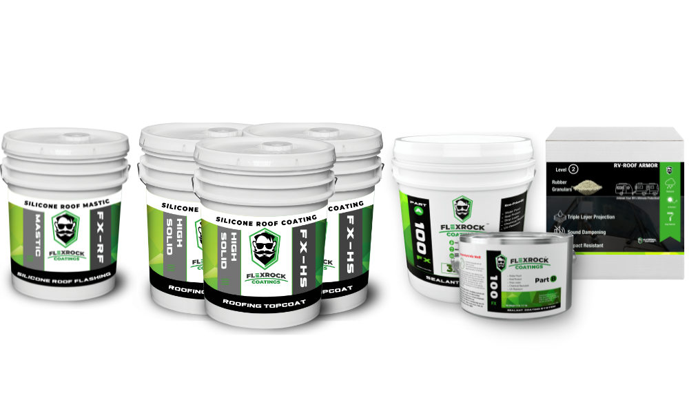 Introducing our revolutionary Triple Layer Direct-to-Deck Kit, specially designed for superior performance. This kit features FX-100 as a basecoat, fortified with PolyRubex for sound dampening and heat deflection. FX 100 fills damaged areas and rejuvenates old plywood decking, providing a stronger substrate than the original manufacturer. With FlexRock FX-100 offering an armor-like finish, and topped with high-quality silicone for UV resistance, it represents the pinnacle of RV roofing technologies.