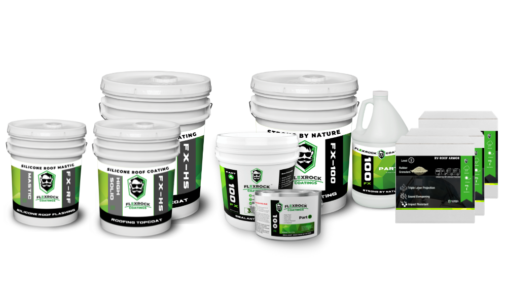 Introducing our revolutionary Triple Layer Direct-to-Deck Kit, specially designed for superior performance. This kit features FX-100 as a basecoat, fortified with PolyRubex for sound dampening and heat deflection. FX 100 fills damaged areas and rejuvenates old plywood decking, providing a stronger substrate than the original manufacturer. With FlexRock FX-100 offering an armor-like finish, and topped with high-quality silicone for UV resistance, it represents the pinnacle of RV roofing technologies.