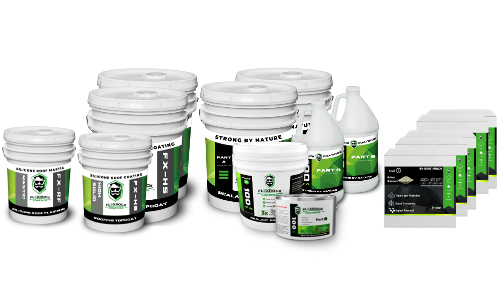 Introducing our revolutionary Triple Layer Direct-to-Deck Kit, specially designed for superior performance. This kit features FX-100 as a basecoat, fortified with PolyRubex for sound dampening and heat deflection. FX 100 fills damaged areas and rejuvenates old plywood decking, providing a stronger substrate than the original manufacturer. With FlexRock FX-100 offering an armor-like finish, and topped with high-quality silicone for UV resistance, it represents the pinnacle of RV roofing technologies.